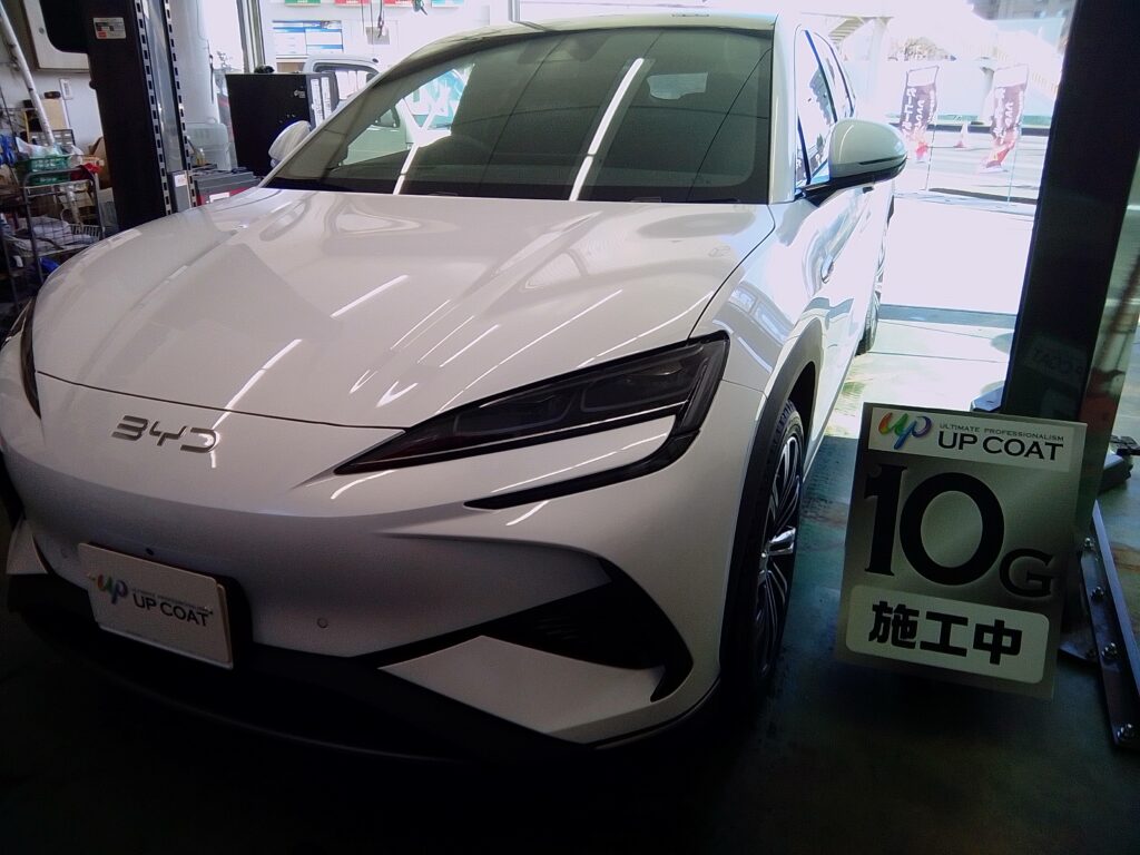三春町 H 様 新車SEALION7にUP-COAT10Gの施工ありがとうございます。 納車後まっすぐご来店頂きました。 ルーフはガラス面でしたのでガラスコート…